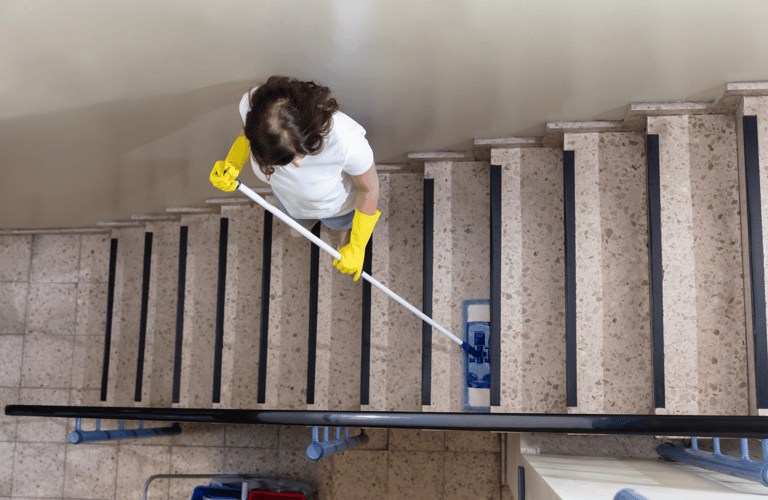 Bei Haus und Herz bieten wir eine umfassende Treppenhausreinigung, die Ihre Räumlichkeiten stets gepflegt und einladend hält.