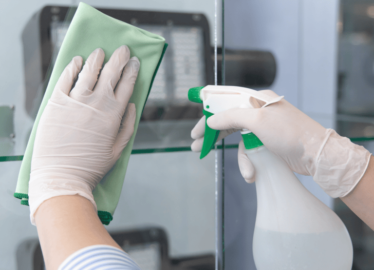 Gründliche Reinigung und Desinfektion von Arbeitsflächen